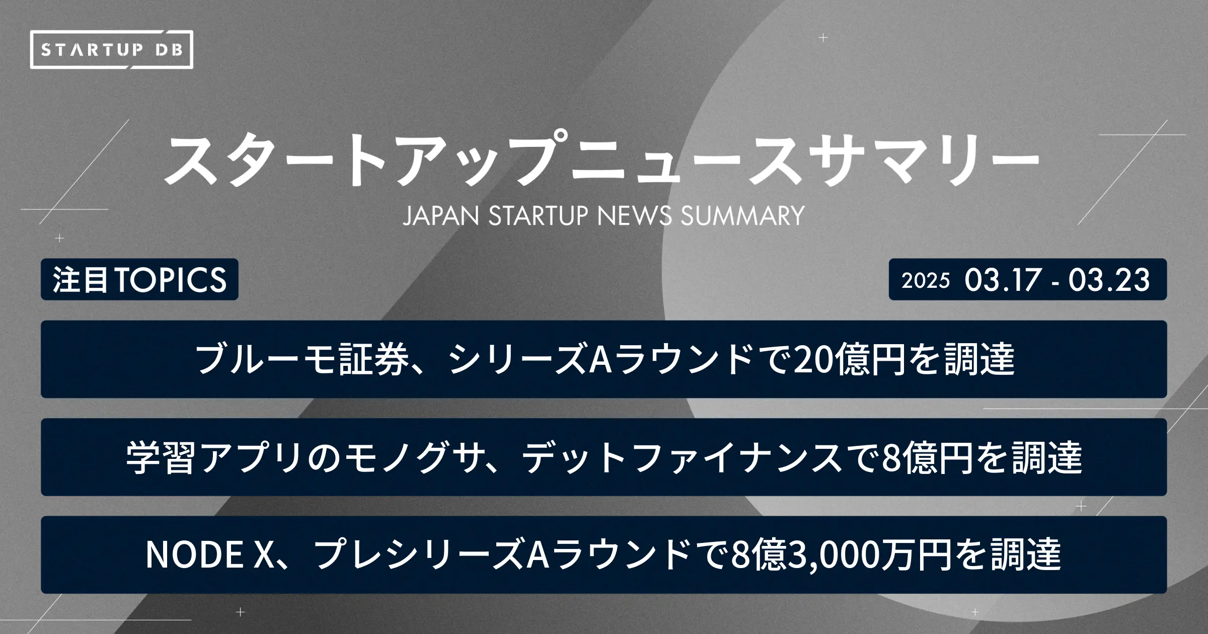 国内の成長産業やスタートアップに関する幅広い情報を収集・整理し、検索可能にした情報プラットフォーム「STARTUP DB」では毎週、スタートアップニュースサマリーを配信している。