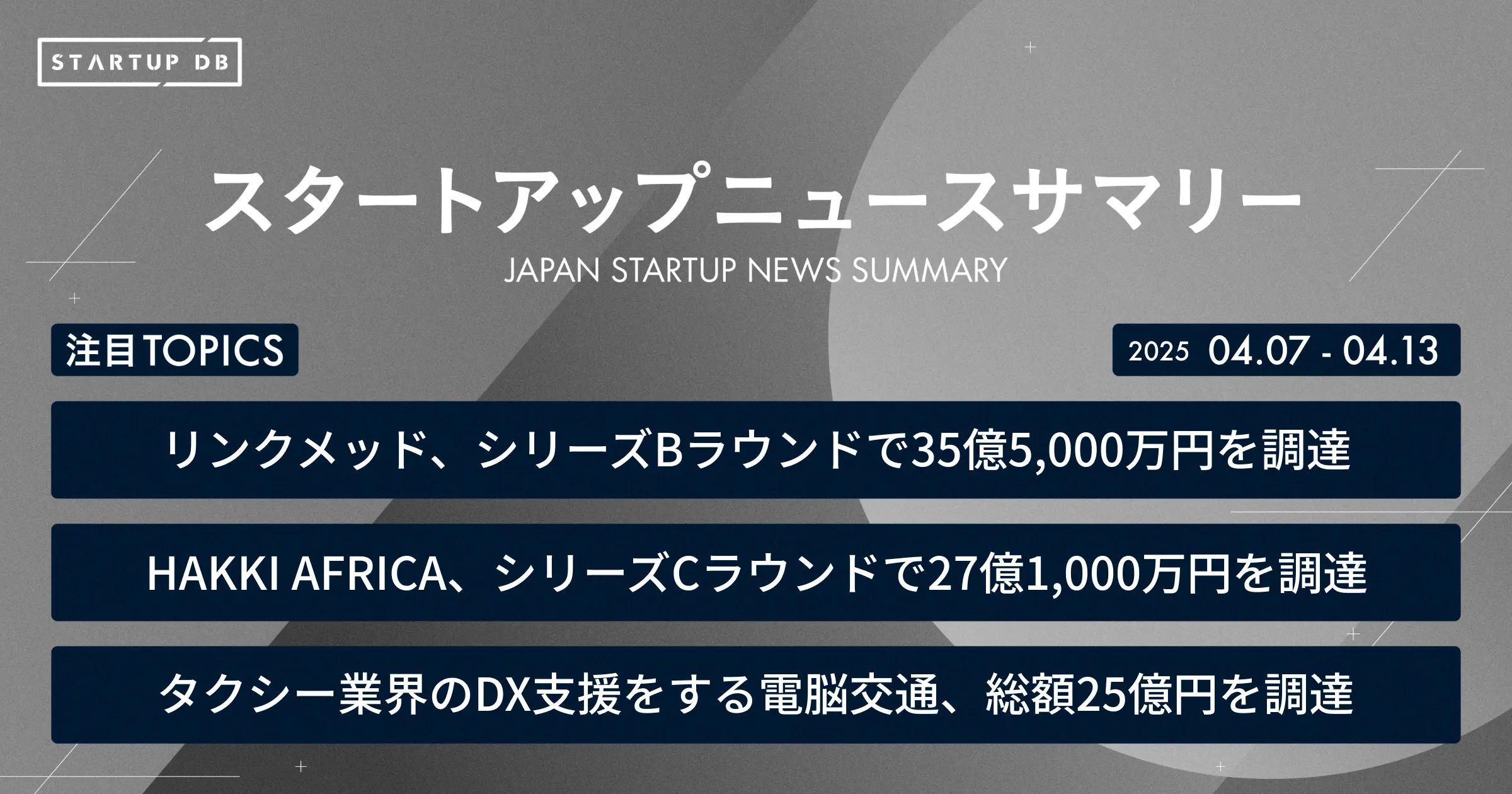 国内の成長産業やスタートアップに関する幅広い情報を収集・整理し、検索可能にした情報プラットフォーム「STARTUP DB」では毎週、スタートアップニュースサマリーを配信している。