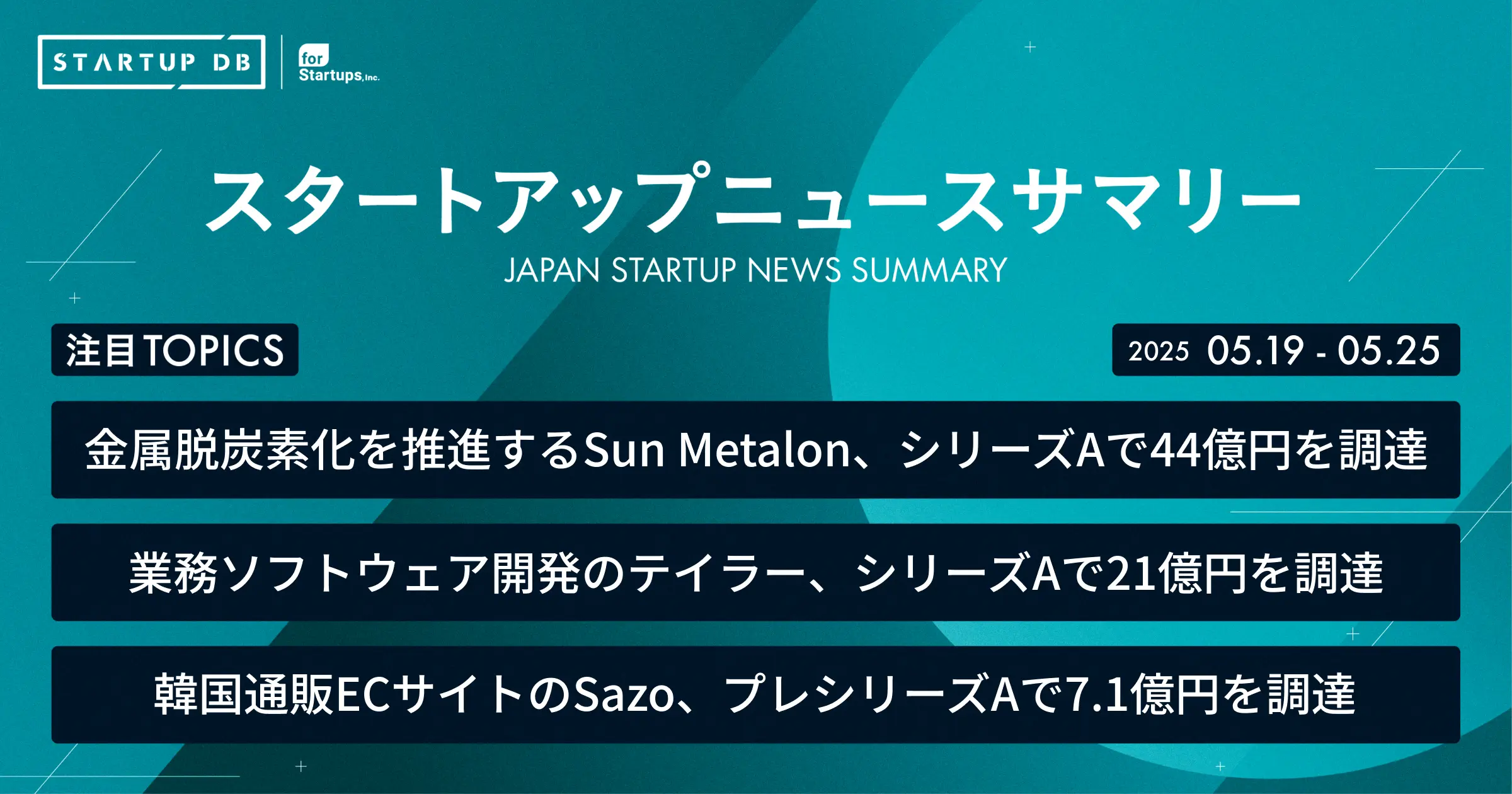 ・金属業界の脱炭素化を推進するSun Metalon、シリーズAラウンド2ndクローズで44億円を調達!調達資金は、日米での事業拡大に充て、グローバルな脱炭素化と循環型社会の実現を加速していくそう。