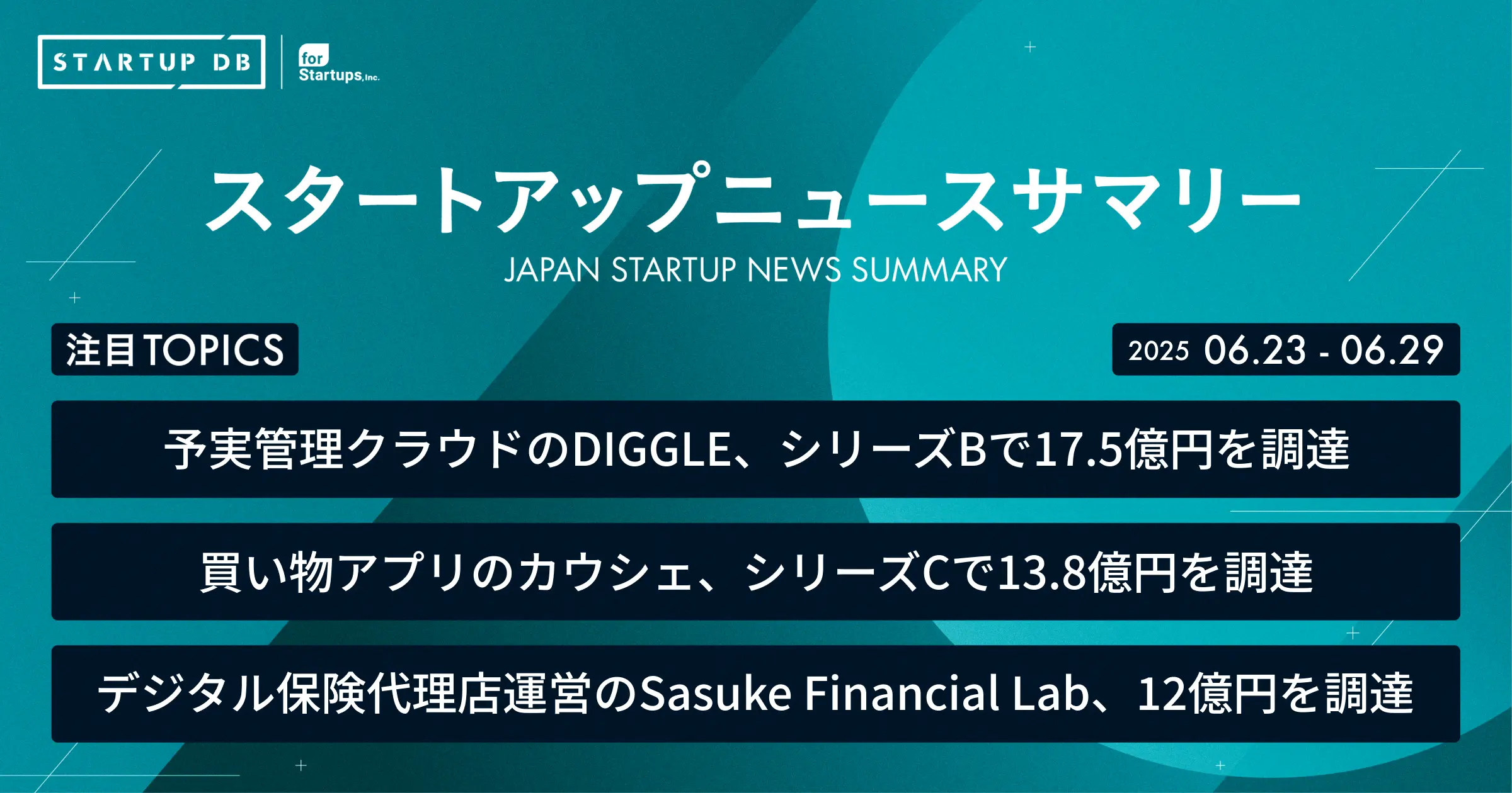 国内の成長産業やスタートアップに関する幅広い情報を収集・整理し、検索可能にした情報プラットフォーム「STARTUP DB」では毎週、スタートアップニュースサマリーを配信している。