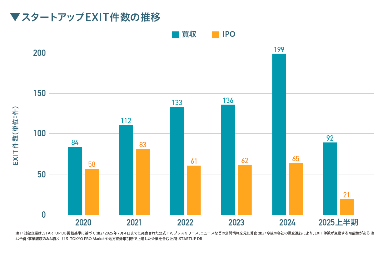 また、EXITの動きをみると、IPO件数は低調な状態が続いているが、買収件数が増加傾向となった。