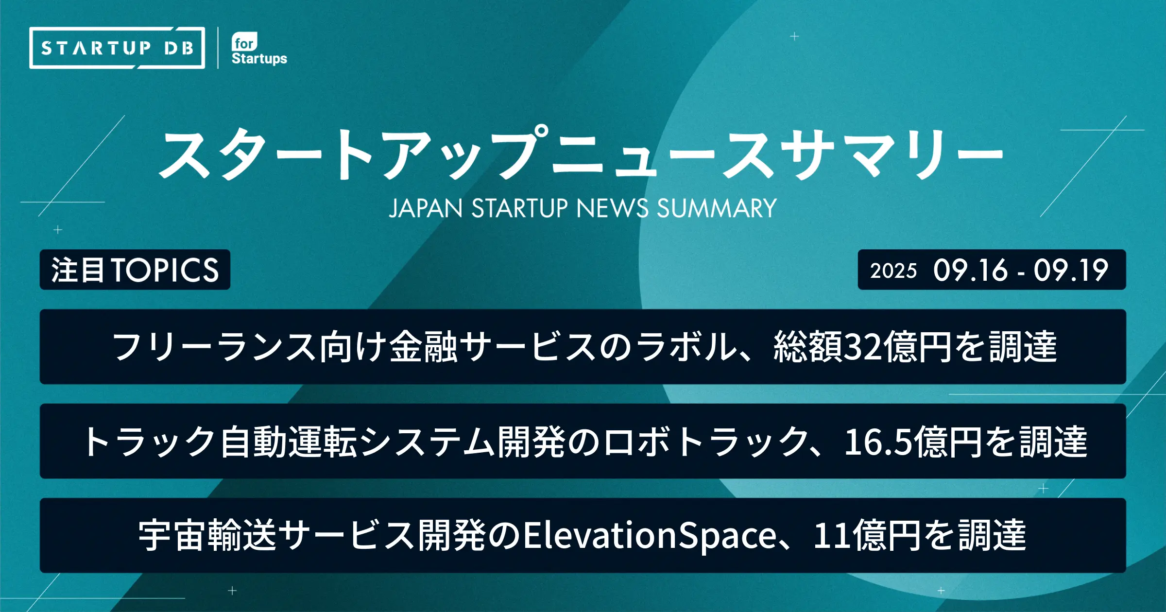 ・フリーランス向け金融サービスを提供するラボル、総額32億円を調達!調達資金は、チャレンジャーバンク構想の実現に向けたM&A、新規事業開発、AI技術の研究開発、採用・組織体制の強化などに充当し、サービス拡充と成長投資を加速するそう。