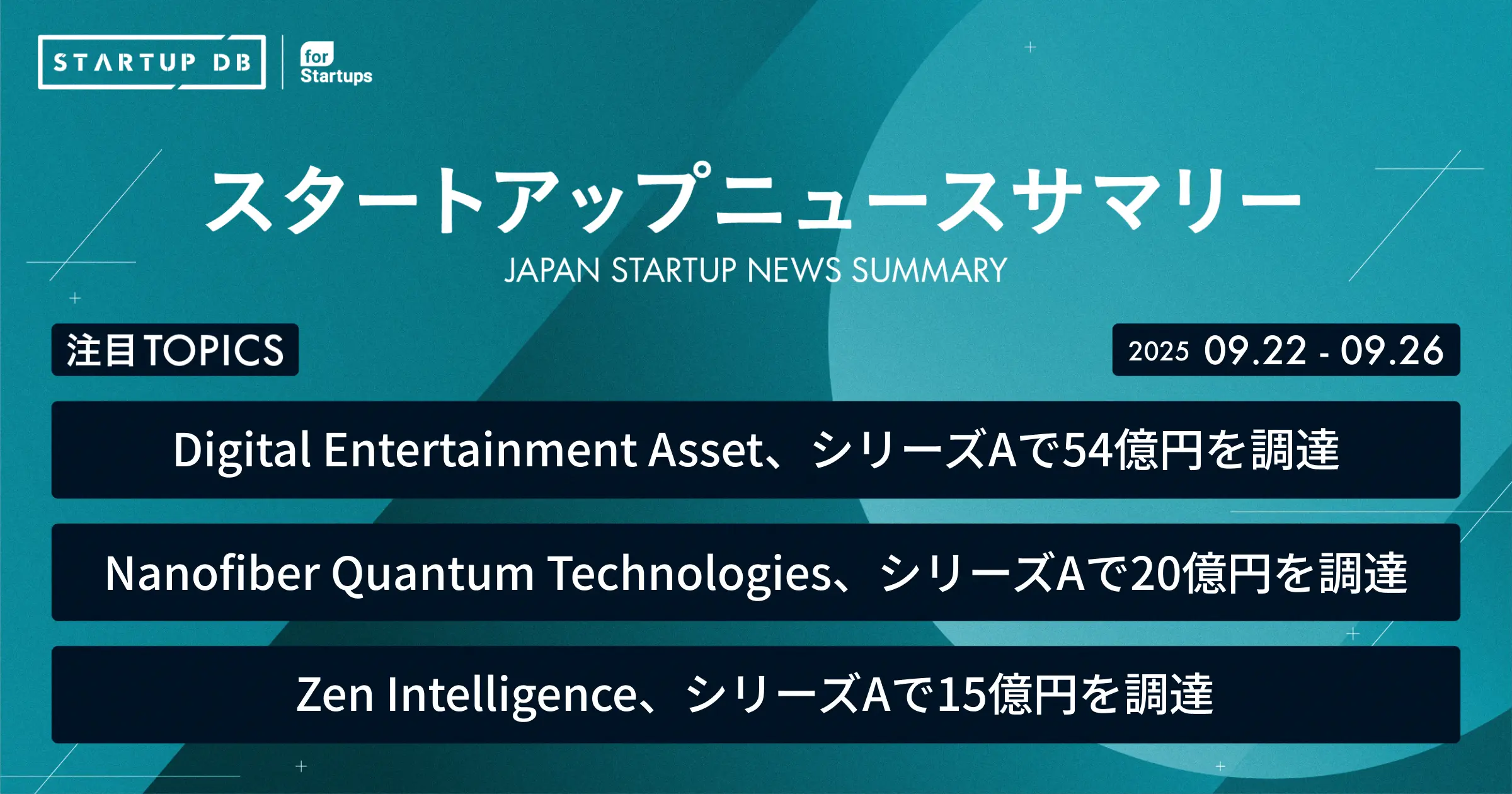 国内の成長産業やスタートアップに関する幅広い情報を収集・整理し、検索可能にした情報プラットフォーム「STARTUP DB」では毎週、スタートアップニュースサマリーを配信している。