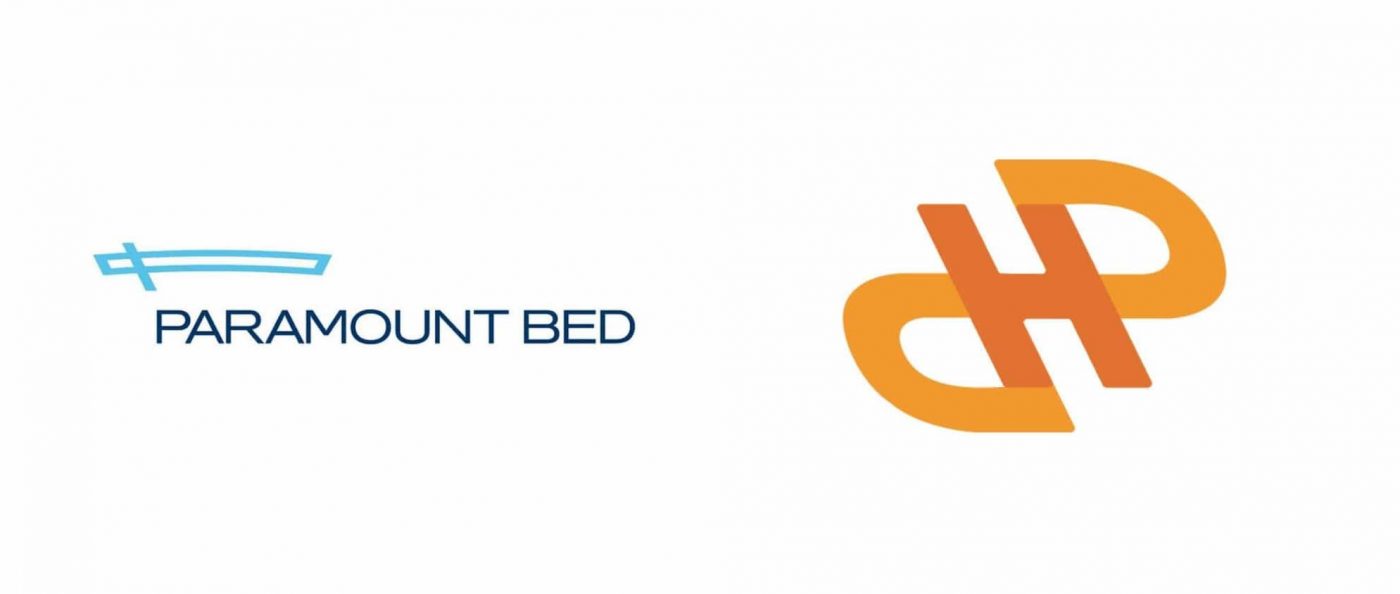 ※左がパラマウントベッドのロゴ、右がHelppadのロゴ。左上から右下に流れる線は同じ角度を描いている