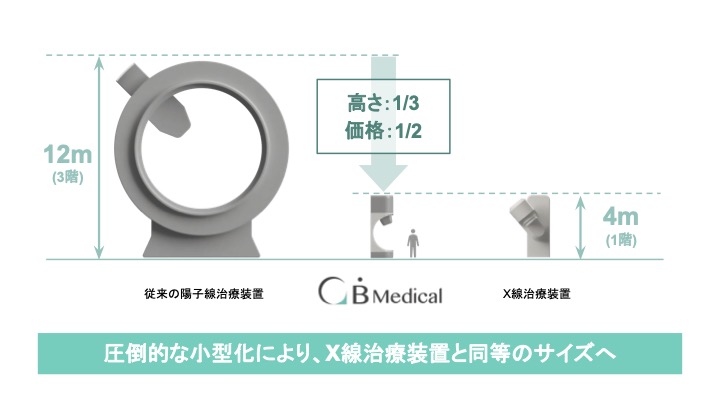 従来のX線を用いた放射線治療よりも副作用が少なく、通院で治療できるなど利点の多い陽子線治療。3階建てビルにも匹敵する巨大な装置を導入するためのコストが障壁となり普及してこなかったが、「ビードットメディカル」(東京江戸川区)は独自技術でその壁を乗り越えようとしている。