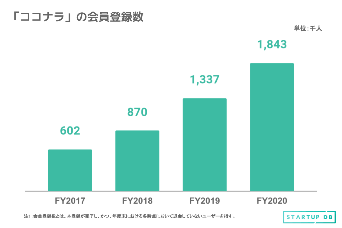 会員登録数は毎年+40%前後で推移しており、FY2020時点でおよそ184万人となっている。この増加の主な要因は、2017年7月と2019年6~8月に実施したテレビCMの放映によるものだ。