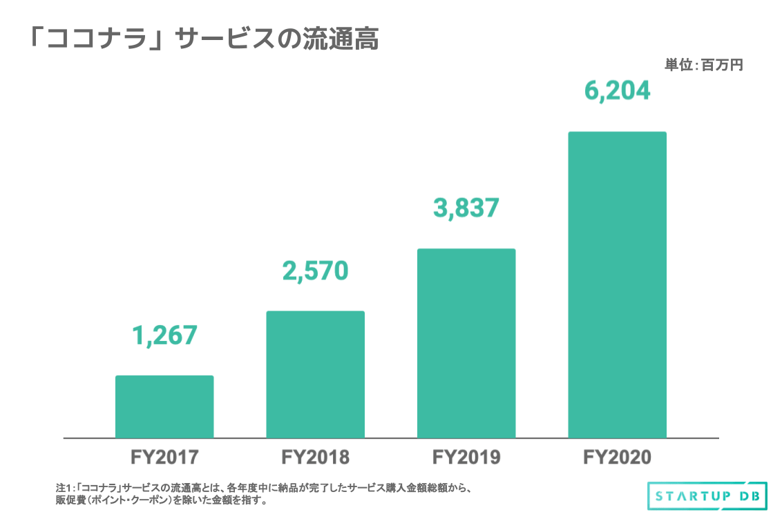 後述する、有料購入UUおよびARPPUが順調に伸びており、その結果として流通高も成長している。特にFY2019からFY2020にかけて流通高の上昇はめざましく、+62%の増加をみせた。
