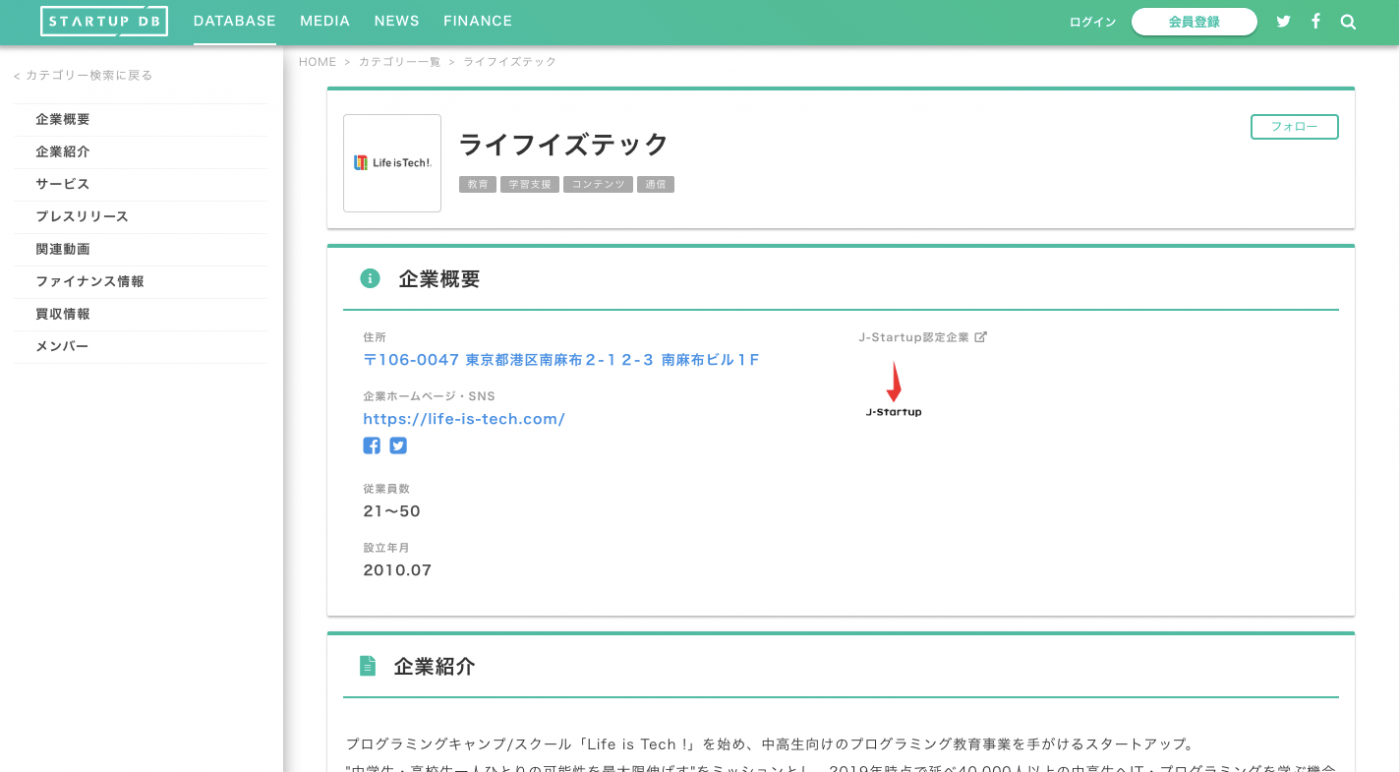 プログラミングキャンプ/スクール「Life is Tech !」を始め、中高生向けのプログラミング教育事業を手がけるスタートアップ。"中学生・高校生一人ひとりの可能性を最大限伸ばす"をミッションとし、2019年時点で延べ40,000人以上の中高生へIT・プログラミングを学ぶ機会を提供。主サービスである「Life is Tech!」を始め、他にも女性向けプログラム「CodeGirls(コードガールズ)」や教員向けサービス「Tech for Teachers(テックフォーティーチャーズ)」、アントレプレナーシップ教育プログラム「Be Startup(ビースタートアップ)」などを提供し、幅広い軸においてプログラミング教育を展開している。