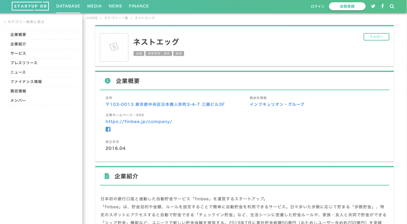 日本初の銀行口座と連動した自動貯金サービス「finbee」を運営するスタートアップ。「finbee」は、貯金目的や金額、ルールを設定することで簡単に自動貯金を利用できるサービス。日々歩いた歩数に応じて貯まる「歩数貯金」、特定のスポットにアクセスすると自動で貯金できる「チェックイン貯金」など、生活シーンに密着した貯金ルールや、家族・友人と共同で貯金ができる「シェア貯金」機能など、ユニークで新しい貯金体験を提供する。2019年7月に累計貯金総額50億円(おためしユーザー含め約200億円)を突破し、同年10月に、ゲーム感覚で貯金を進められる新機能「クエスト貯金」をローンチするなど、より便利で楽しい機能の拡大を進めている。