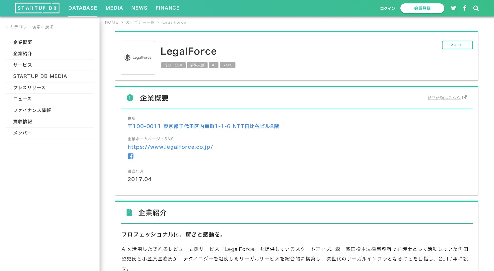 AIを活用した契約書レビュー支援サービス「LegalForce」を提供するスタートアップ。「LegalForce」はAIを含むテクノロジーの活用によって、契約書のレビューやそれに紐づく業務を効率化する。WordやPDFの契約書をアップロードし、契約の類型と自社の立場を選択するだけで、数十秒後にリスクを洗い出し、不利な条文や欠落条項を指摘する。また、リスクのある部分については確認すべきポイントとともに修正文例を表示する。現在は業務委託契約を含め、2020年2月時点では22類型をカバーするほか、英語の契約書への対応も進めている。