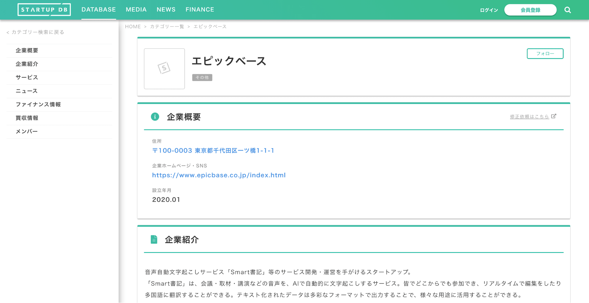 音声自動文字起こしサービス「Smart書記」等のサービスを開発・運営するスタートアップ。「Smart書記」は、会議・取材・講演などの音声を、AIで自動的に文字起こしをするサービス。誰がどこからでも参加でき、リアルタイムで編集を行ったり、多国語に翻訳することができる。テキスト化されたデータは多彩なフォーマットで出力することで、様々な用途に活用される。
