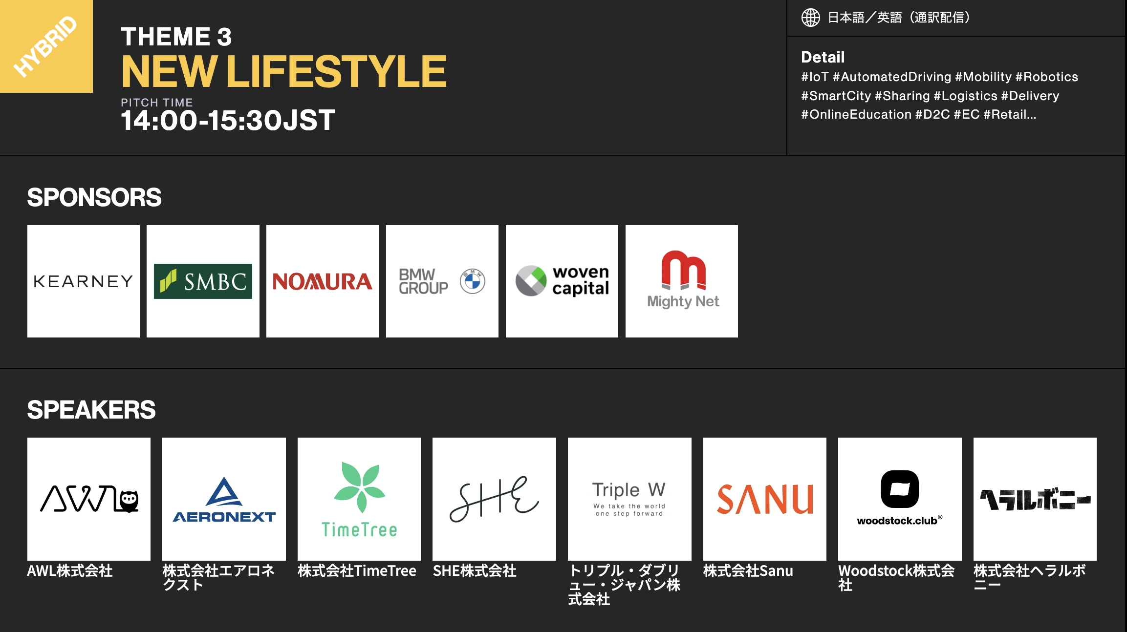 THEME 3 : NEW LIFESTYLEのスポンサー賞および登壇企業は以下の通り。