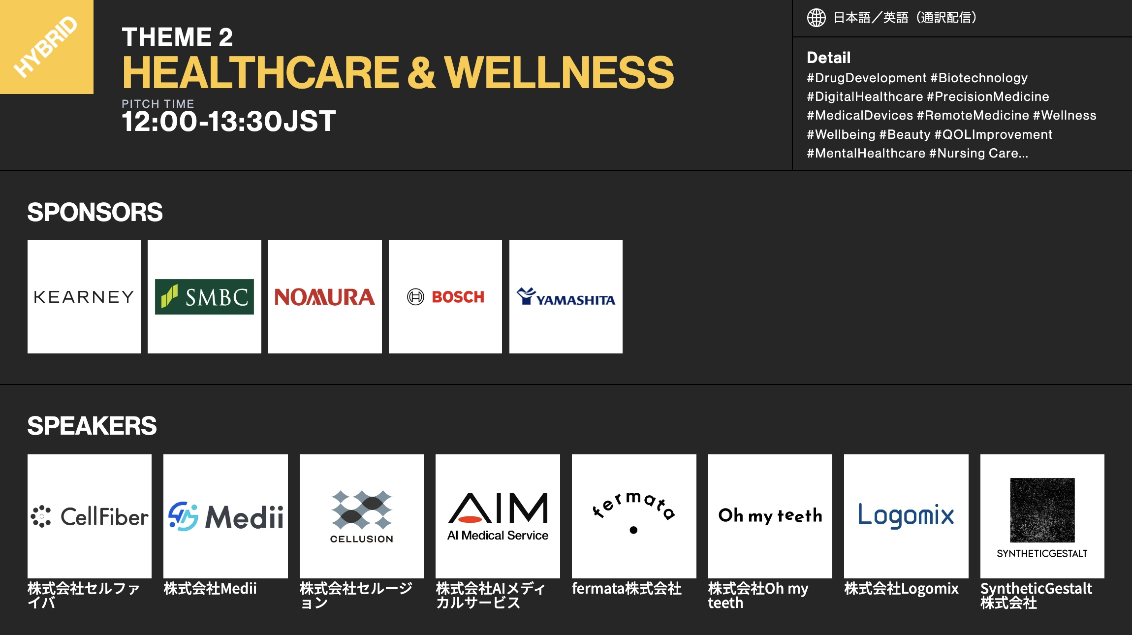 THEME 2 : HEALTHCARE & WELLNESSのスポンサー賞および登壇企業は以下の通り。