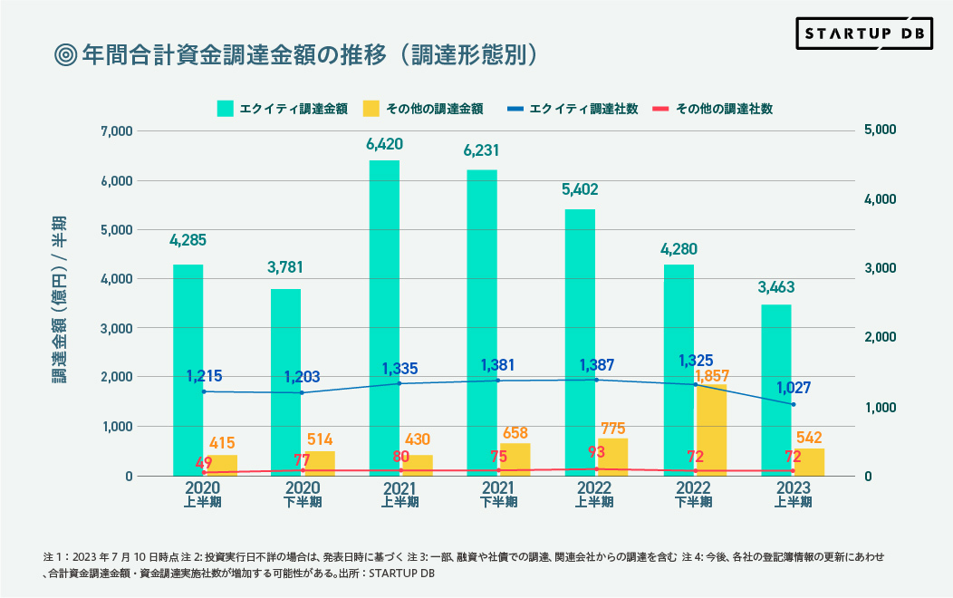 2023年上半期の調達金額は4,000億円台 2020年以来の水準
