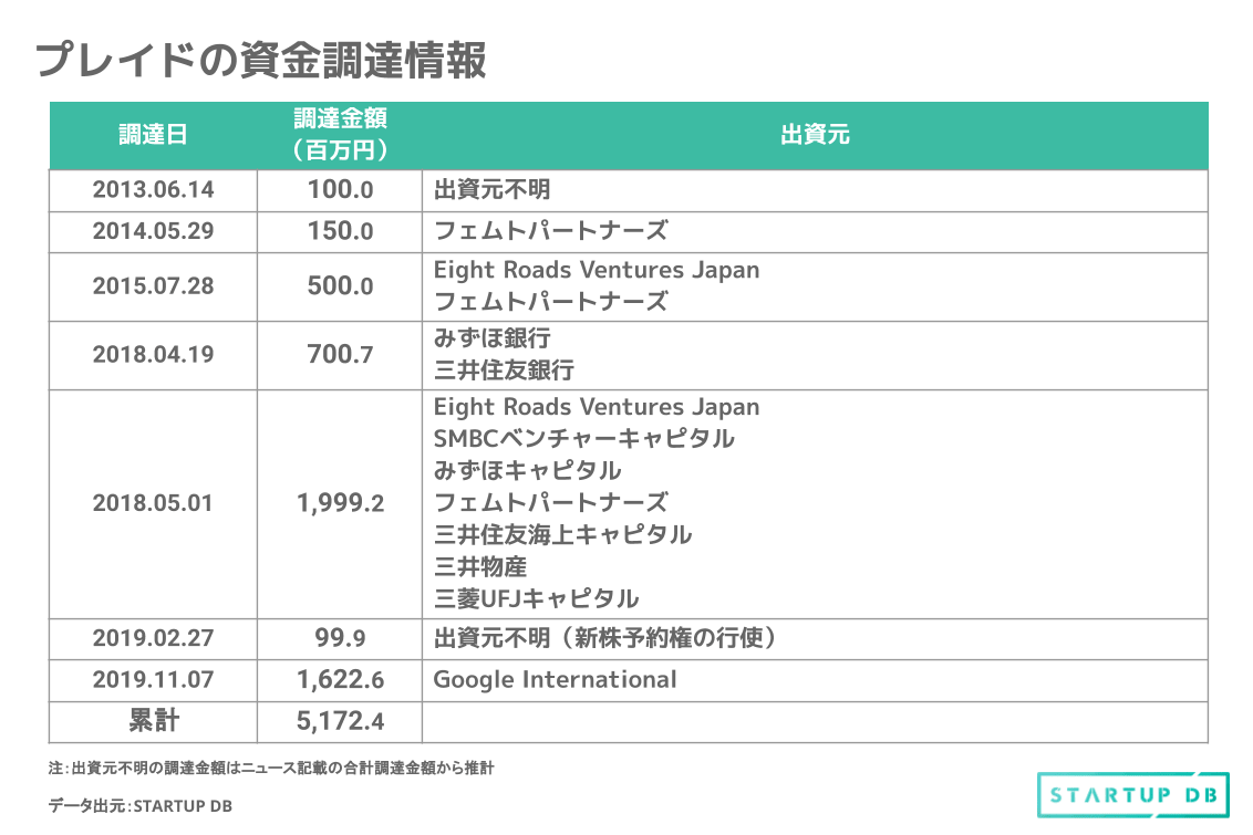 2019年11月7日には、国内外の事業拡大へ向け、米Googleから資金調達を実施している。この調達は、同社の手掛ける「KARTE」へのGoogle Cloudの機械学習やAI(人工知能)技術の統合においての協業を目的とするものだった。両社は、日本におけるクラウド市場の拡大に向けても協業するとしていた。
