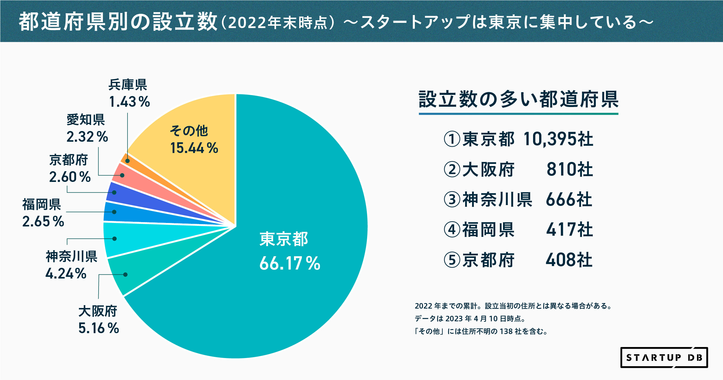 まずは東京への集中ぶりをSTARTUP DBのデータから紐解いていく。