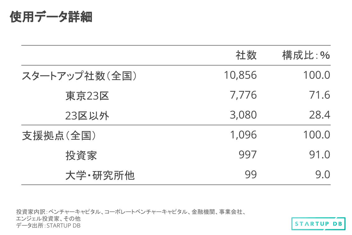 国立大学法人東京大学(東京都文京区、総長:五神真)空間情報科学研究センター(柴崎研究室)に対し、STARTUP DB(スタートアップデーターベース)を用い、「スタートアップ・エコシステムの構造分析」に関する共同研究に2019年9月より取り組んでまいりました。本研究結果を、2020年11月8日に行われた「2020年度都市計画学会 全国大会」にて、発表いたしましたので報告いたします。研究結果からは、スタートアップとその支援機関(VC、インキュベーターなど)によって構成されているエコシステムは、東京都心の渋谷区・港区・千代田区・中央区に集中して立地する傾向が明らかになりました。