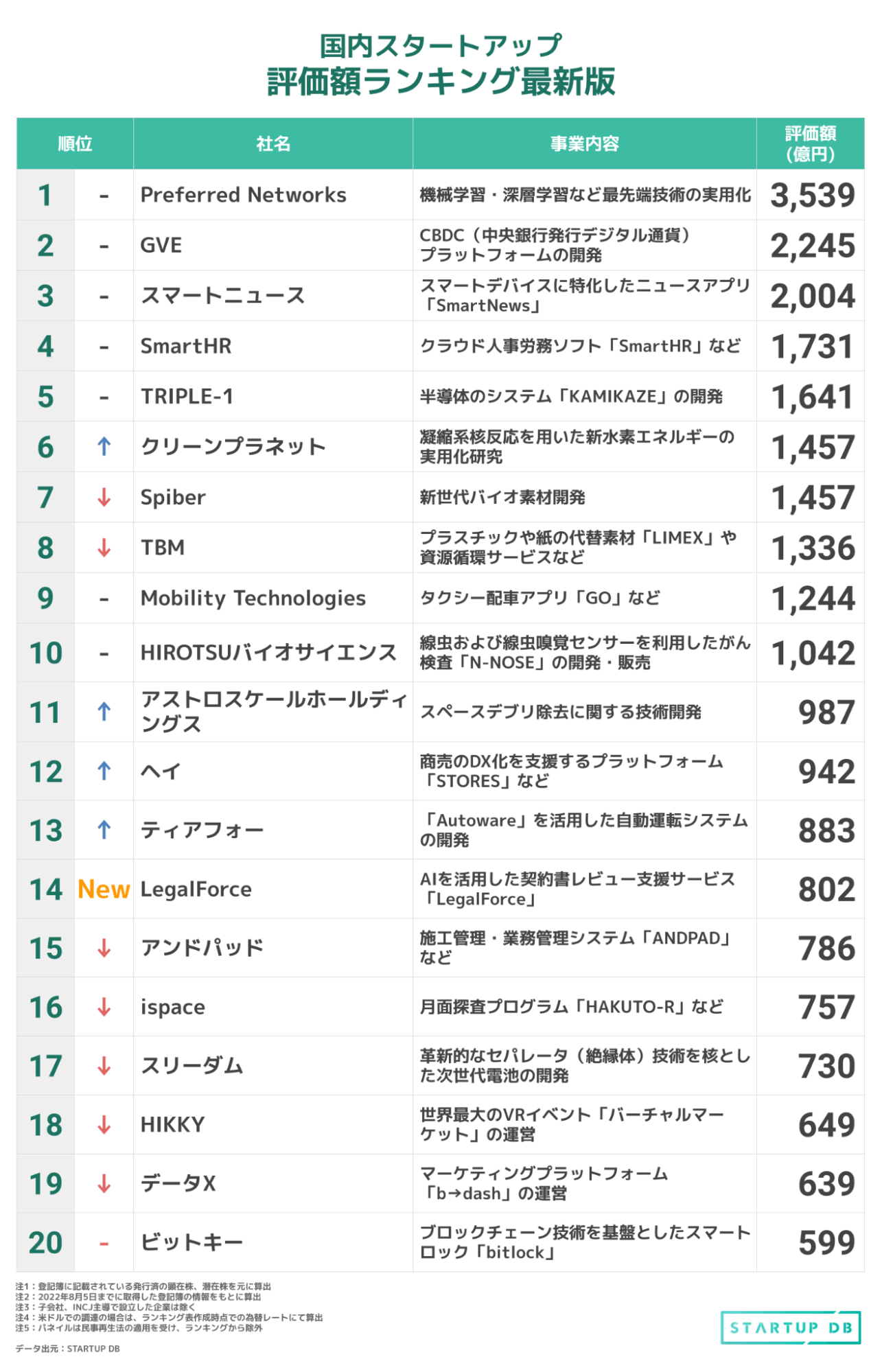 LegalForceが14位に新規ランクイン、評価額は約802億円に