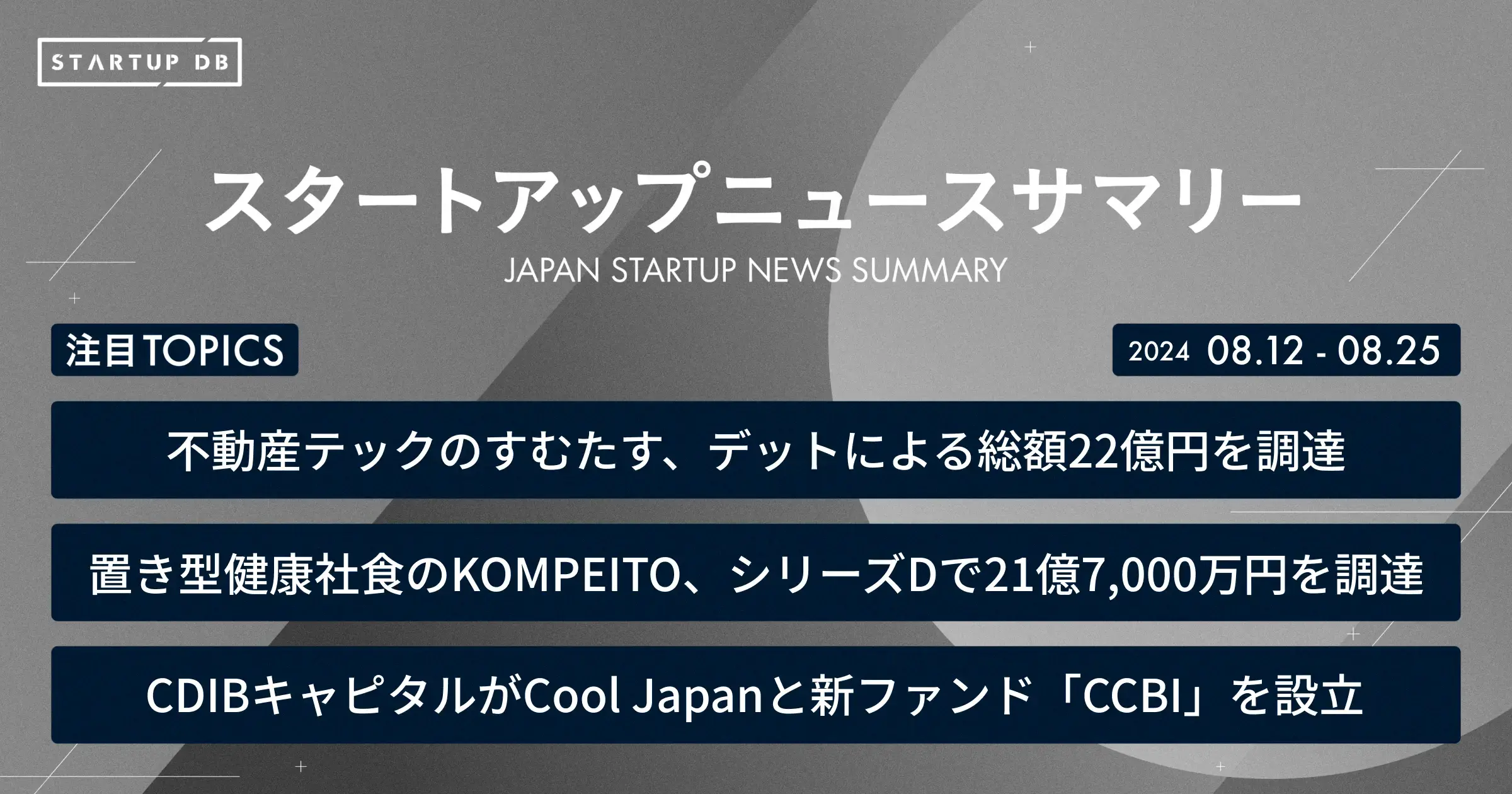 AI査定を活用した不動産売却サービス「すむたす売却」を提供するすむたすは、2024年8月22日に、みずほ銀行、UPSIDER Capital、Funds Startupsによって総額22億円のデットファイナンスを実施したと発表した。