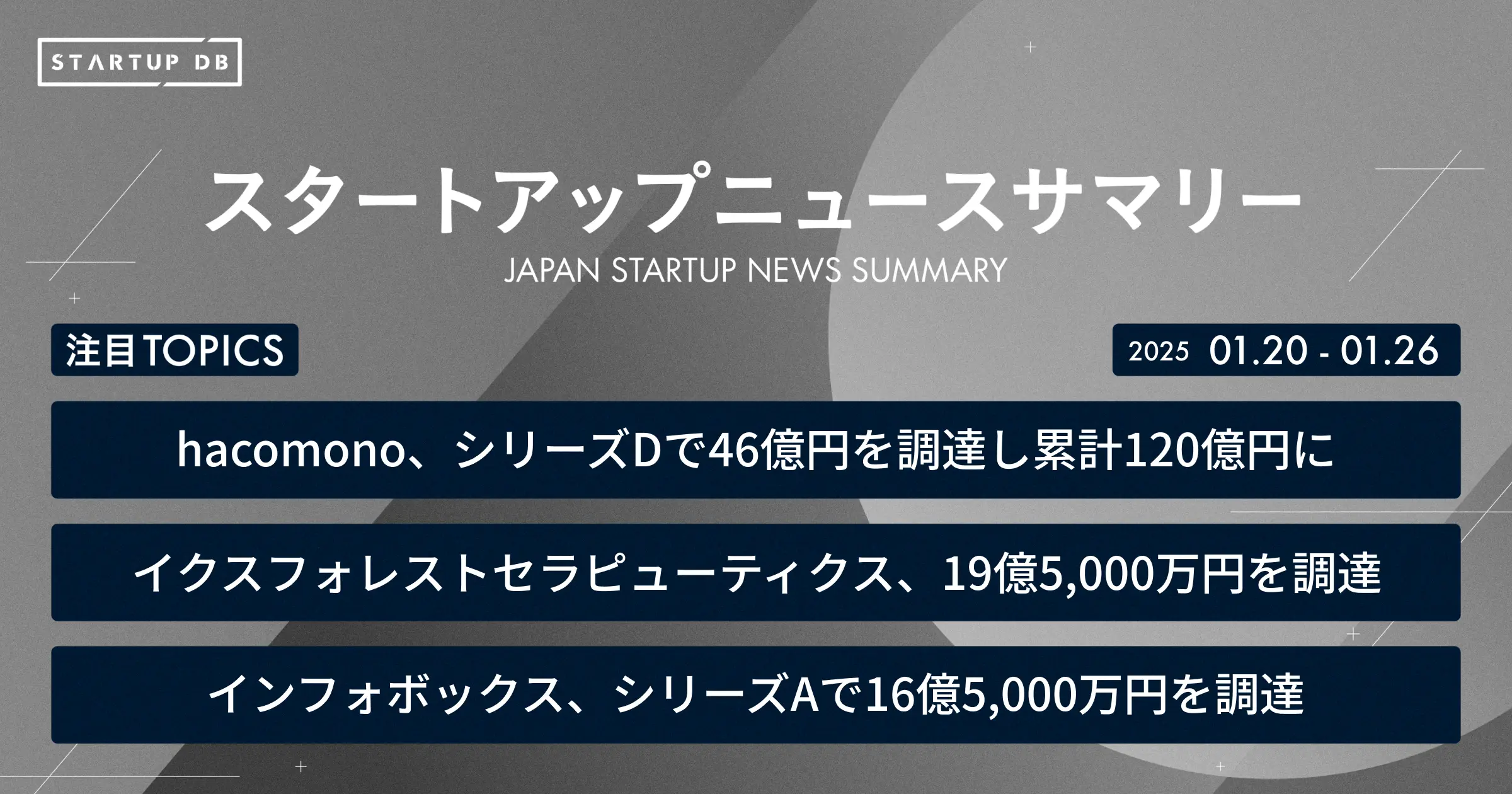 国内の成長産業やスタートアップに関する幅広い情報を収集・整理し、検索可能にした情報プラットフォーム「STARTUP DB」では毎週、スタートアップニュースサマリーを配信している。