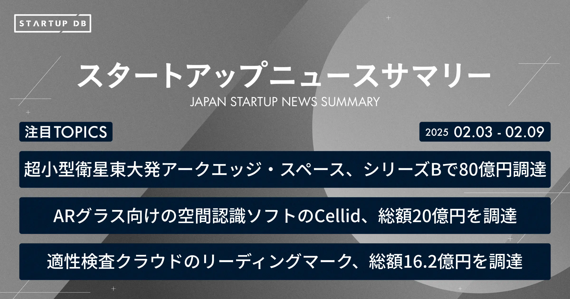 2025年2月4日、超小型衛星コンステレーションの開発を手掛けるアークエッジ・スペースは、シリーズBラウンドで総額80億円の資金調達を実施したと発表した。今回のラウンドには、インキュベイトファンド、JICベンチャー・グロース・インベストメンツ、WiLをリード投資家とし、計15社が出資を行った。これにより、同社の累計資金調達額は107億円となった。