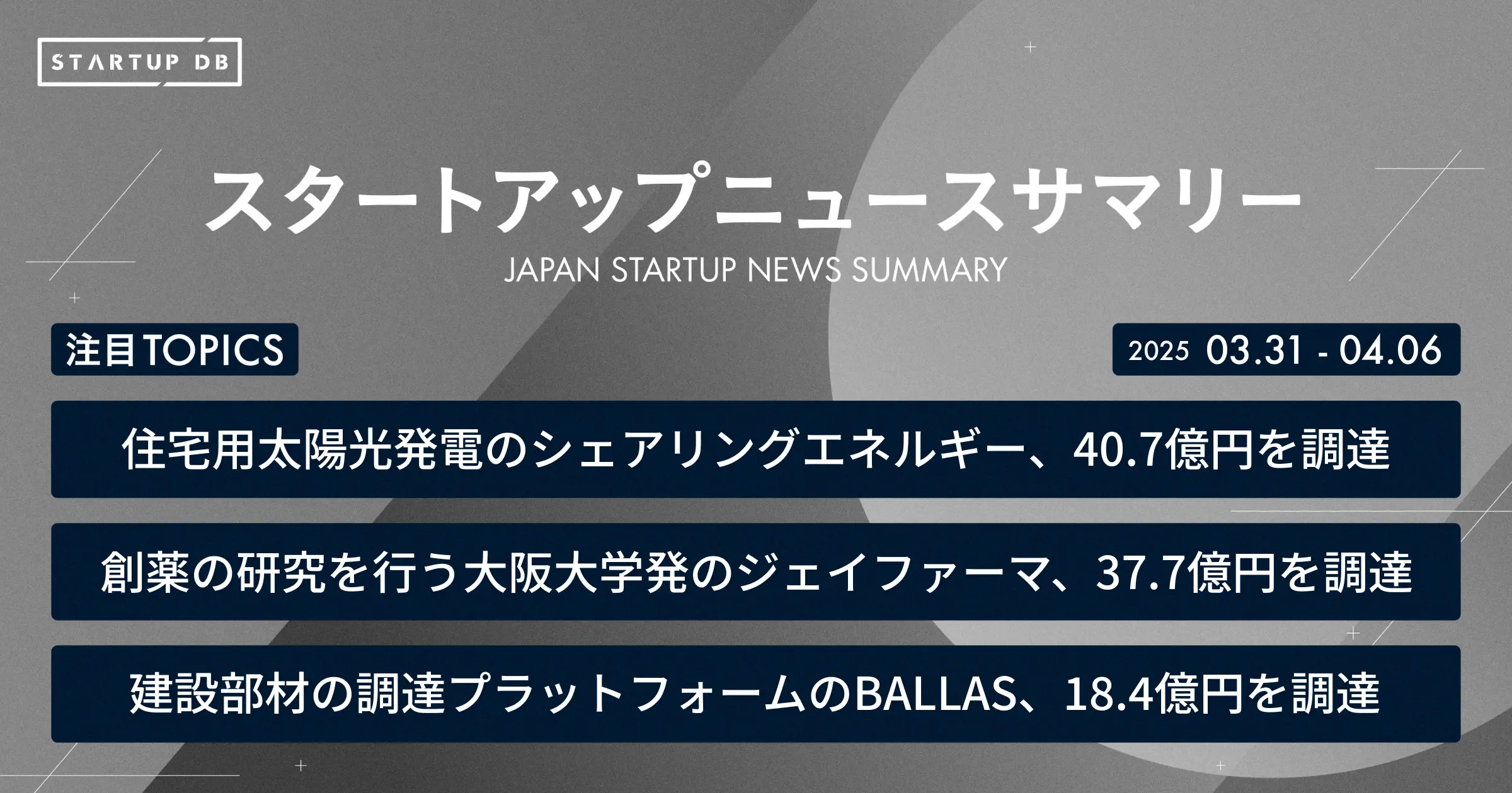 国内の成長産業やスタートアップに関する幅広い情報を収集・整理し、検索可能にした情報プラットフォーム「STARTUP DB」では毎週、スタートアップニュースサマリーを配信している。