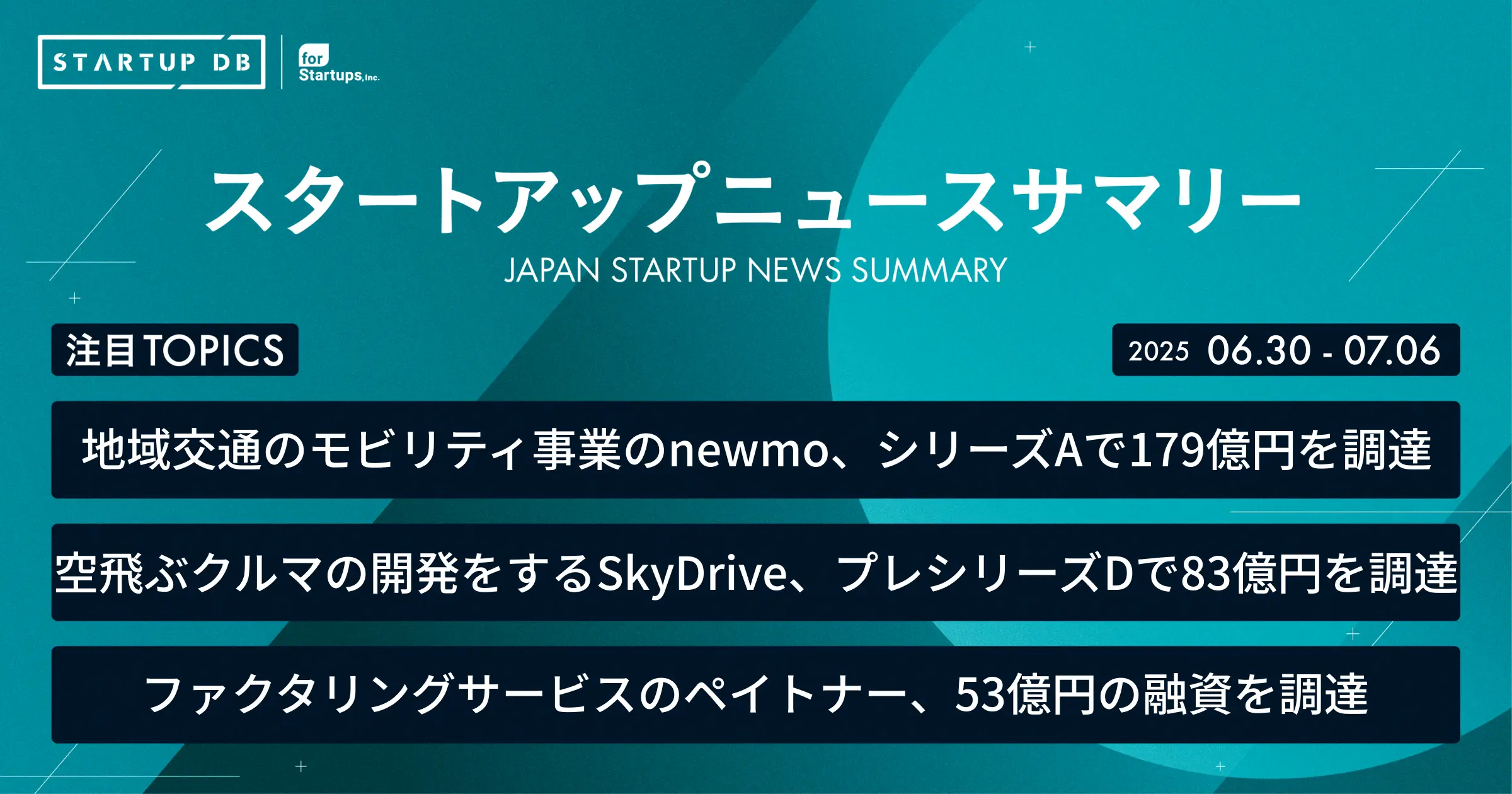 国内の成長産業やスタートアップに関する幅広い情報を収集・整理し、検索可能にした情報プラットフォーム「STARTUP DB」では毎週、スタートアップニュースサマリーを配信している。
