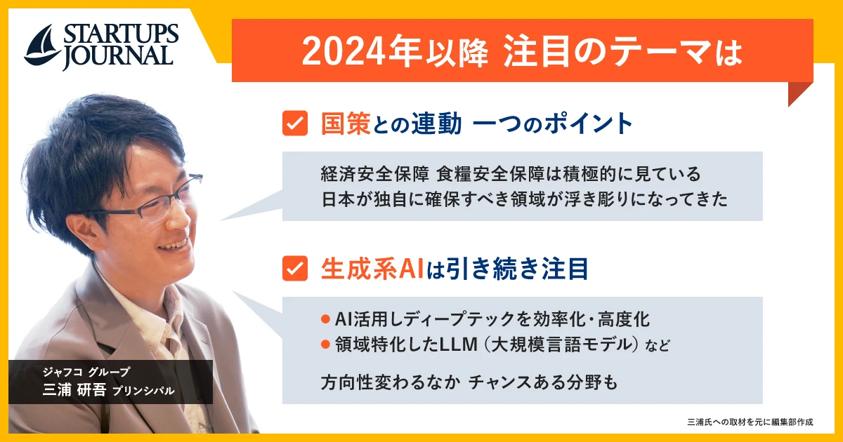 「この領域を日本の強みに」と三浦さんは話す。政策の後押しや投資家の注目もあり、研究開発型スタートアップは2024年も明るい話題を提供してくれそうだ。