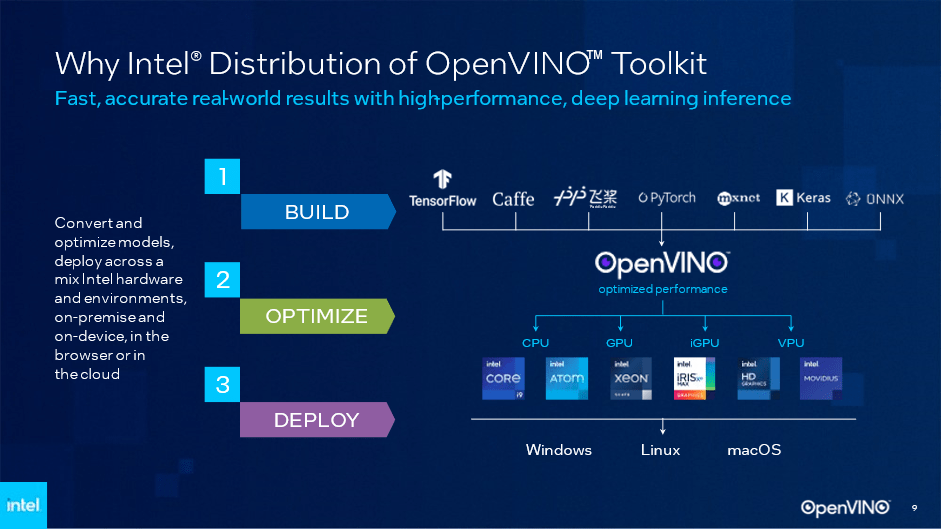 インテルといえばPC向けプロセッサーのイメージが強いが、AIの領域においても大きな進捗を見せている。2018年には、ディープラーニング推論向けの開発ツールキット「OpenVINO™」の提供を開始した。現在はIoT/AI領域においてスタートアップとの連携も強化している。