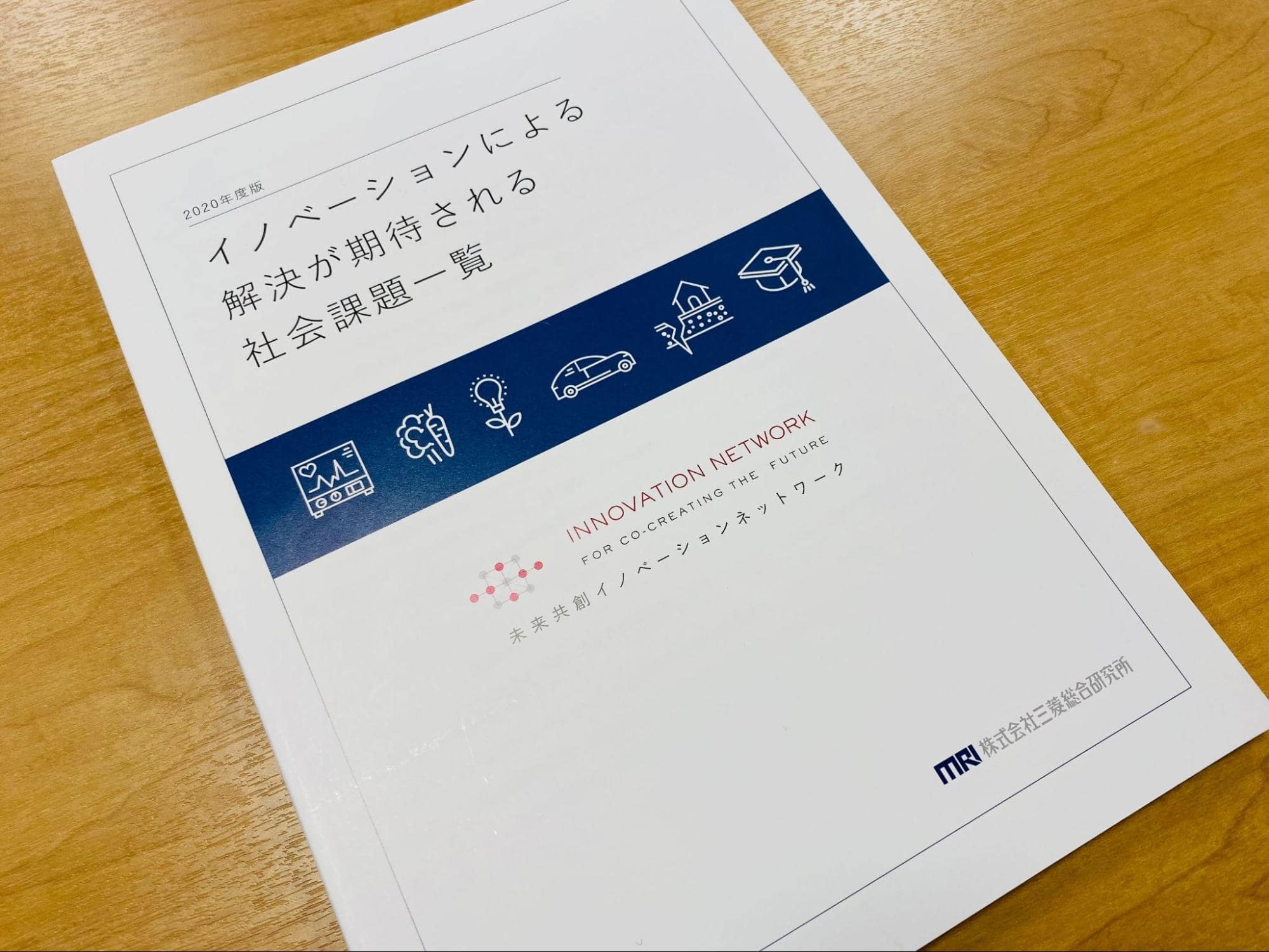 また、目指すべき未来社会の姿と現状の姿とのギャップを社会問題としてリストアップし、その中から、解決すべきインパクトの大きな社会課題を設定、これを6分野(①ウェルネス、②水・食料、③エネルギー・環境、④モビリティ、⑤防災・インフラ、⑥教育・人財育成)ごとに整理・一覧にした冊子『イノベーションによる解決が期待される社会課題一覧(通称:社会課題リスト)』の提供もしている。