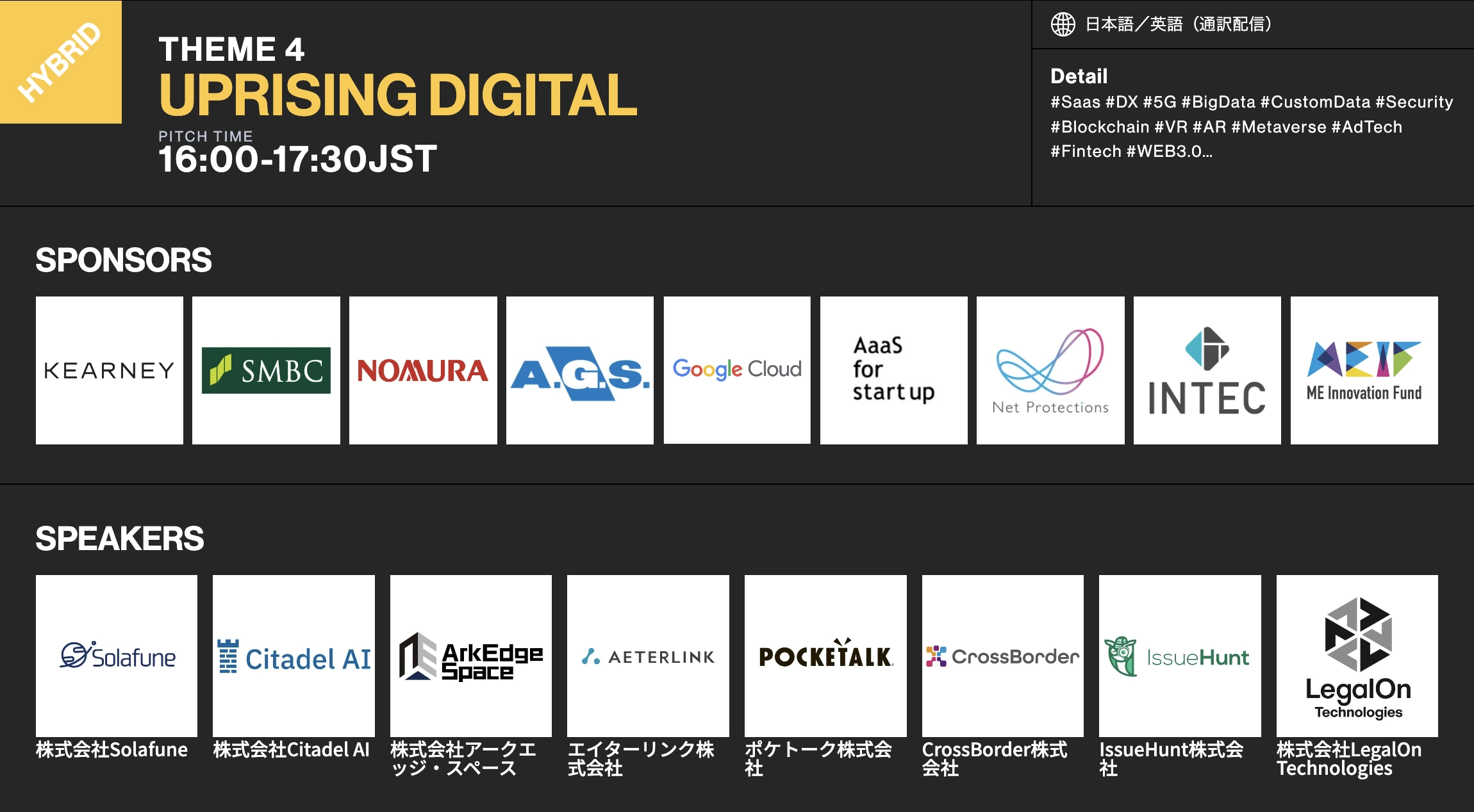 THEME 4 : UPRISING DIGITALのスポンサー賞および登壇企業は以下の通り。
