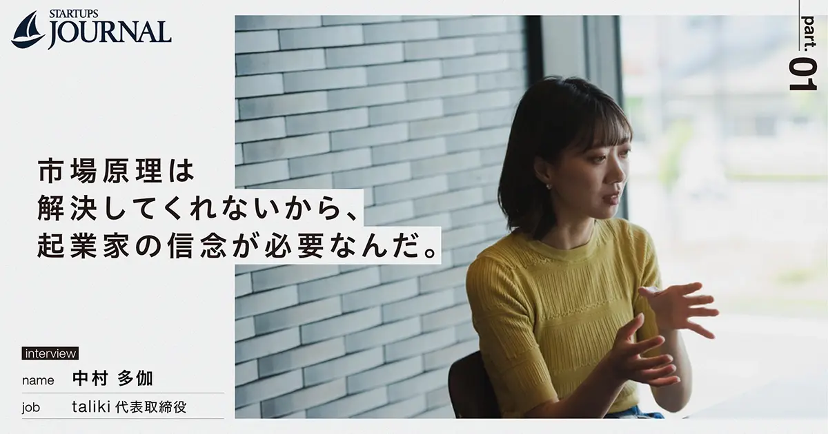 「難しいことに難しいことを掛け合わせている」。社会起業家に対しVC(ベンチャーキャピタル)として出資・事業開発・広報支援などを実施するtalikiの中村多伽・代表取締役CEOはそう話します。