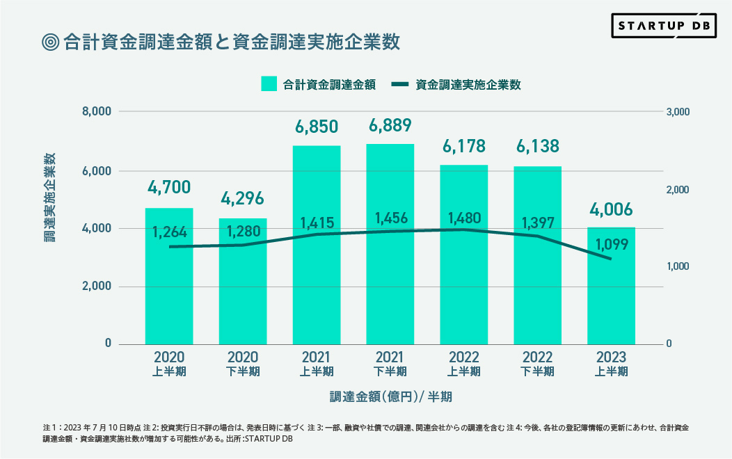 2023年上半期の調達金額は4,000億円台 2020年以来の水準