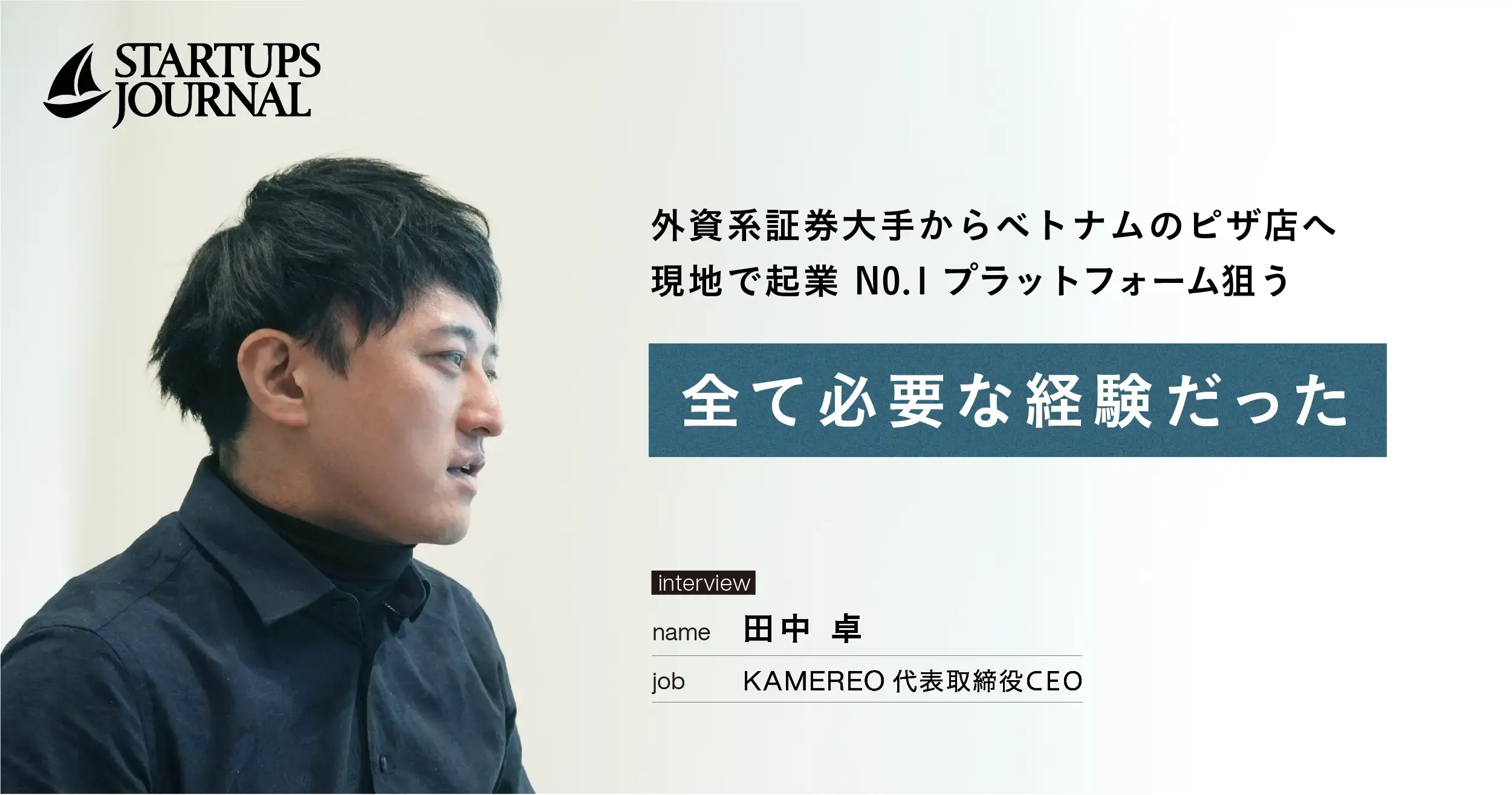 田中さんはベトナムのピザ店を成長軌道に乗せた後、現地で独立起業を果たす。現在は、事業者向け食材EC(電子商取引)プラットフォームを運営するKAMEREOの代表だ。