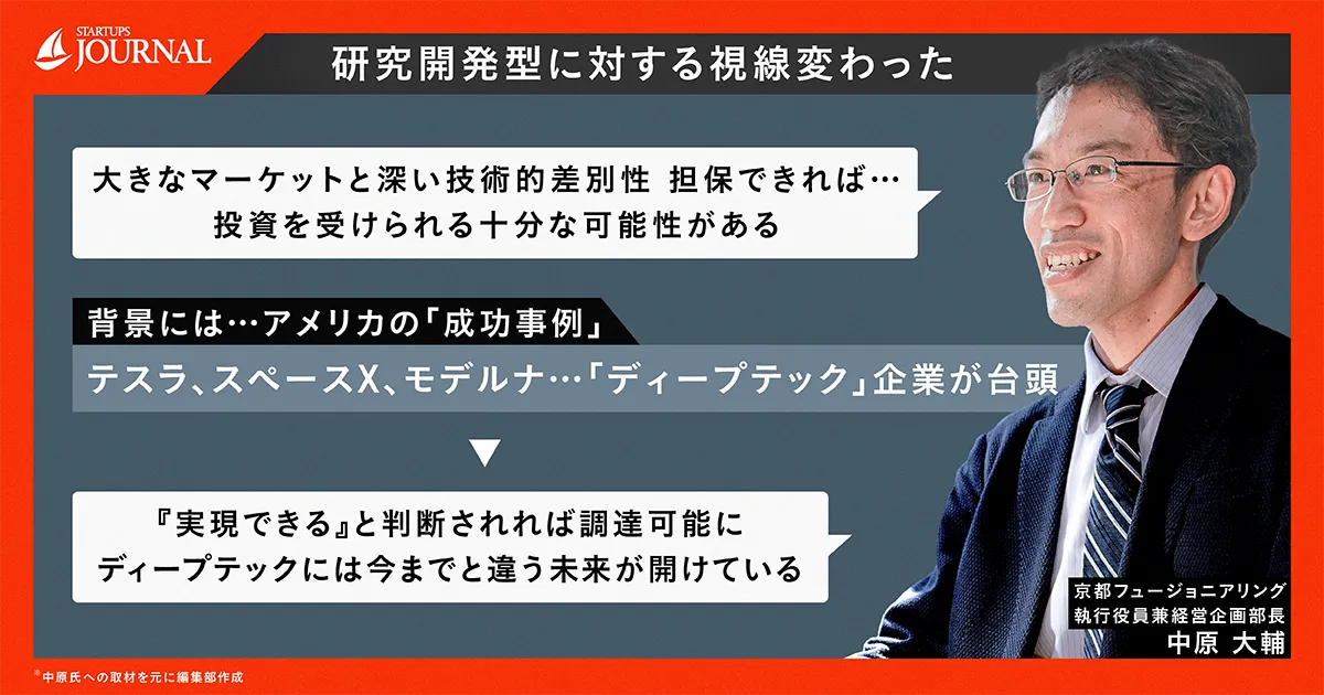 「テスラ、スペースX、モデルナといったディープテック領域のスタートアップが兆円単位のスケールに育ち、(投資を受けて成長する)ストーリーが成り立つと証明されたのです。この3社が出てきた結果として、『実現できる』と判断された企業にファイナンスがつくようになったことが大きい」