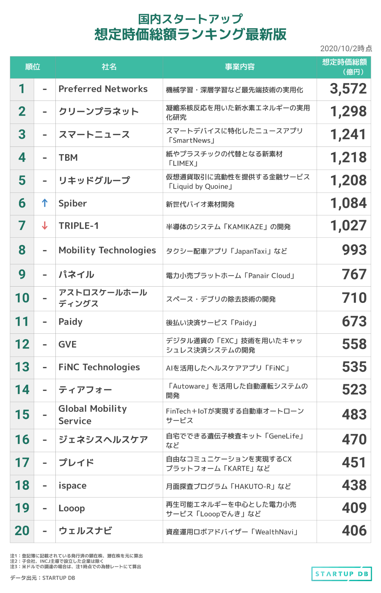 STARTUP DBでは次月以降も引き続き、想定時価総額ランキングと主要トピックに関する記事をリリースしていく。