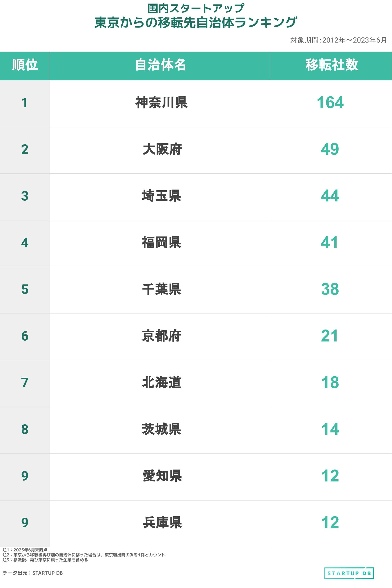 STARTUP DBでは、国税庁に届け出があった所在地に関する情報をもとに、東京都から別の自治体へ転出したスタートアップを集計した。なお、移転後に再び東京へ戻ったスタートアップも含めている。