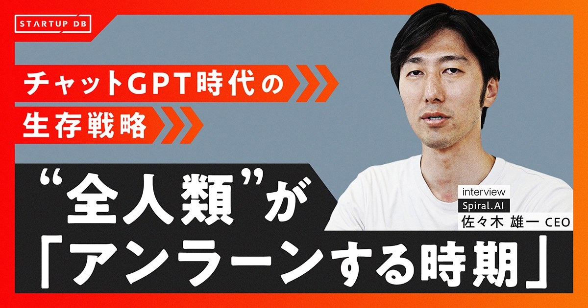 「プログラマーと記者は一番大変かもしれません。AIは文章仕事が得意ですから」と話すのは、生成系AIの一種であるLLM(巨大言語モデル)に特化したスタートアップ、Spiral.AIを立ち上げた佐々木雄一・CEOだ。