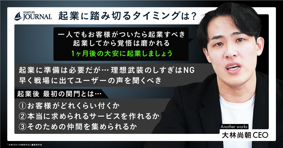 次回は大林さんに、実際に起業してから「最初の1年間」の過ごし方を語って頂きます。